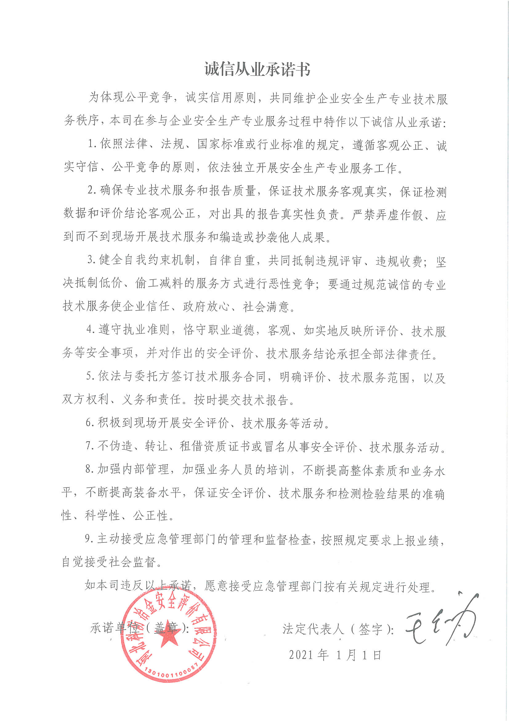 公司建立了一整套完整的《過程控制程序》文件,并在運行中不斷持續改進。建立了危險化學品類、冶金等工貿類、職業衛生類的《作業文件》及《安全生產標準化作業文件》,建立了嚴謹配套的安全評價報告、安全生產標準化評審報告的審核程序,使評價、評審過程中每個環節均在受控之中,一切按《程序》走,按《過程控制文件》要求辦。篤行“科學、客觀、公正、負責”的職業操守及服務宗旨。