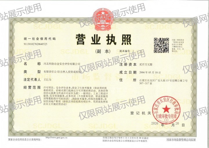 河北科防冶金安全評價有限公司成立于2004年5月,注冊資本2000萬元,是專業從事安全評價、安全生產標準化咨詢、安全生產標準評審、職業病危害因素檢測和評價、安全生產隱患排查、應急管理咨詢及預案編制等安全生產綜合技術服務公司。現有專家、專業技術人員110人,專業覆蓋安全、化工工藝、化工機械、自動化、電氣、機械、冶金、有色金屬等。